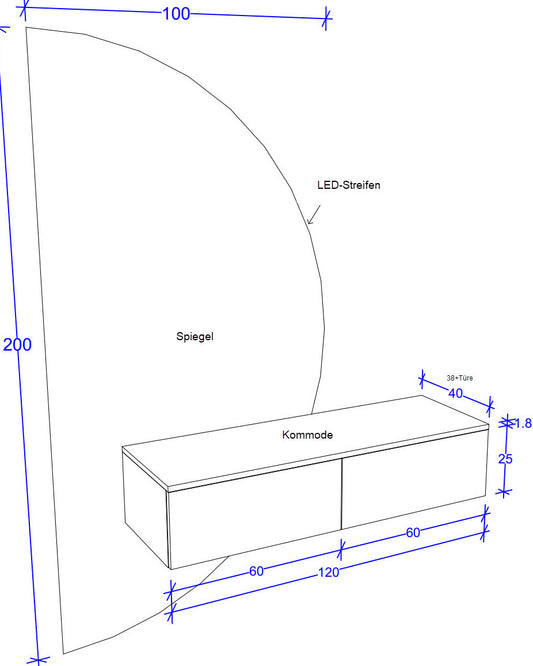 Spiegelkommode asymmetrisch